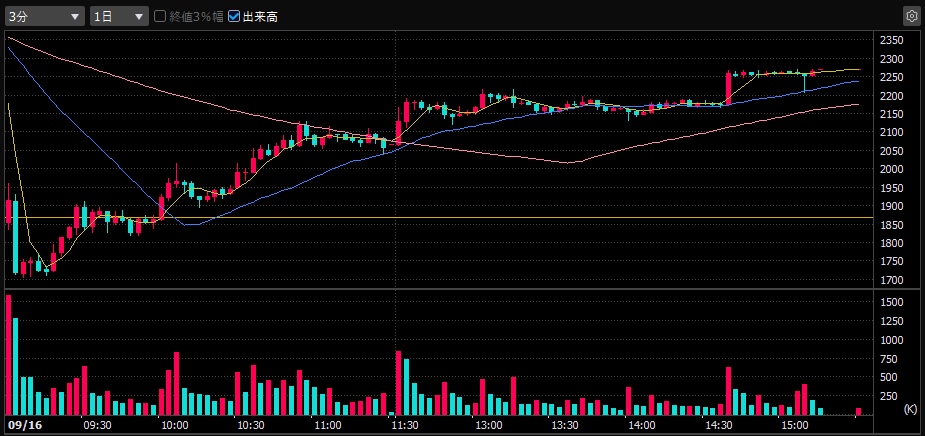 仕手株すぎて手が出せないが、朝一の高値を抜いたところはインポイントだったかもしれない
