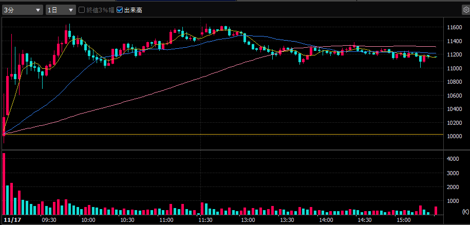 PTSでは9200まで下げていたが、寄りかけて上昇